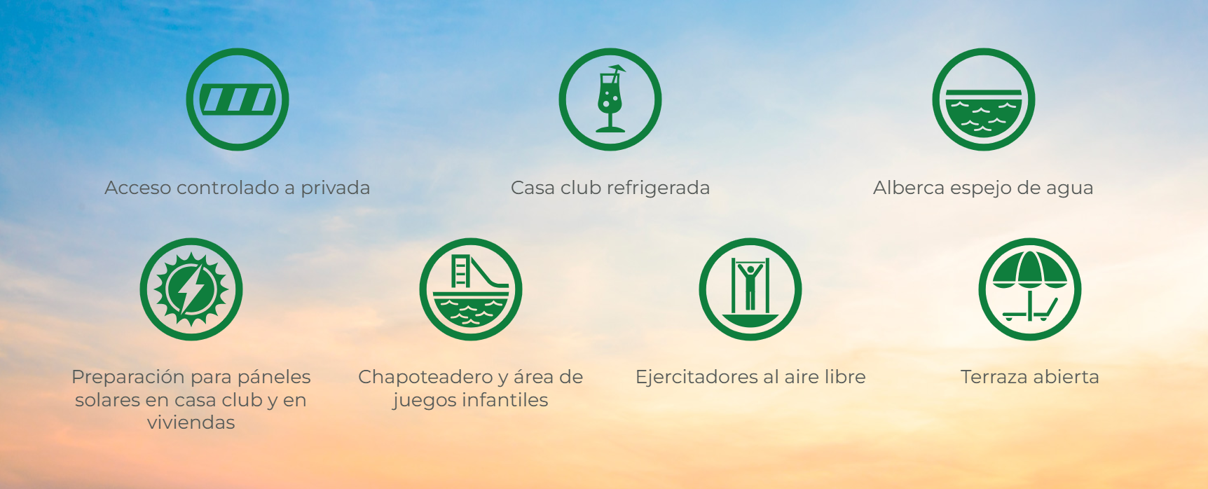 "Exclusividad en cada detalle. Descubre un mundo de comodidades de primer nivel reservado solo para residentes. Con acceso controlado, seguridad 24/7 y amenidades meticulosamente cuidadas, Alcalá del Rey Residencial ofrece un entorno de tranquilidad y distinción."